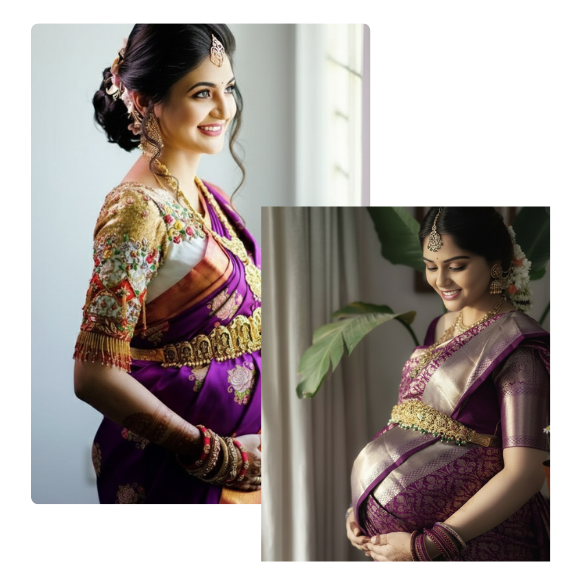 Your baby shower (or Valaikaappu) is a day of joy, celebration, and cherished memories. You’re already glowing from within, and our job is to enhance that natural radiance.